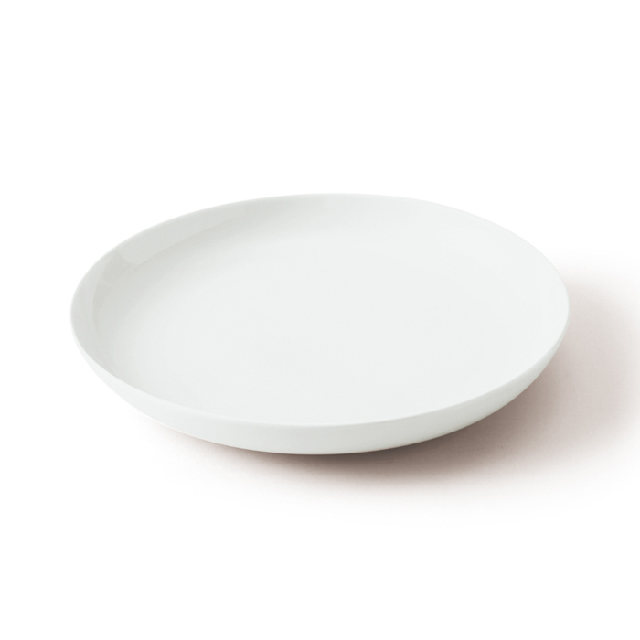 和食器シリーズの道具としての持ち味と、現代の暮らしの在り方との調和を求め、白のみという最小限の姿で構築した「古白磁」。7寸おかず皿は、炒め物や煮魚、天ぷらなど、定番のおかずを盛りつけるのにぴったりです。
